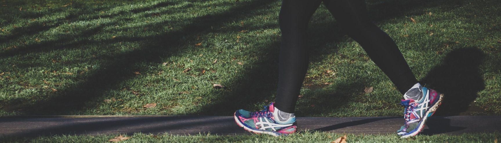 Two women in athletic wear walk on a paved path next to a beach, with ocean waves and greenery visible in the background. One holds a phone, and both appear to be exercising or enjoying a casual walk.