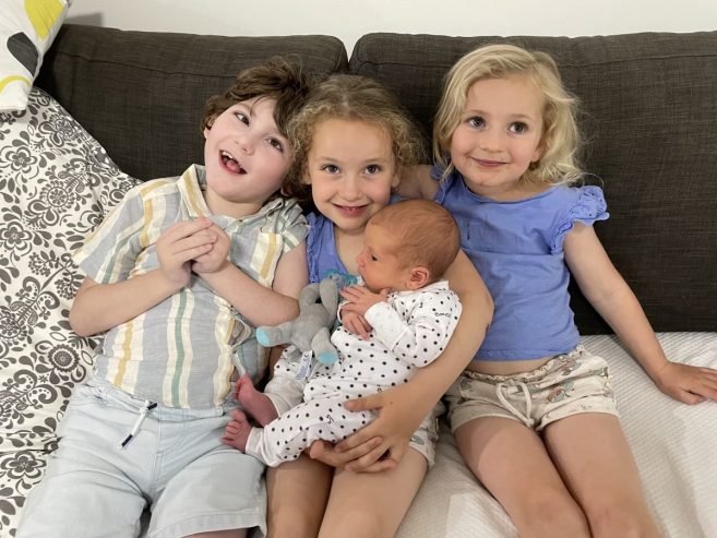 Pam along with her husband Tom and their children – Christopher (7), Charlotte (5), Matilda (3), and Maxwell (3months) – live in the ACT.